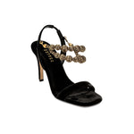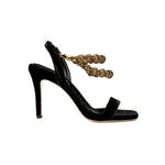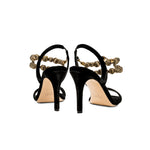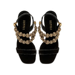 Oozing ancient Grecian charm, the Lyra High Heel Sandals are designed for the most special occasions. Crafted in Italy from lustrous elegant black velvet, the sandals are set on 90mm stiletto heels with slingback straps. Signature Serena Uziyel handwoven embellishments bring glamor to the simple silhouette, with two sculptural and jewellike chains formed of balls wrapped in ancient golden threads which delicately adorn the front of the foot.