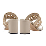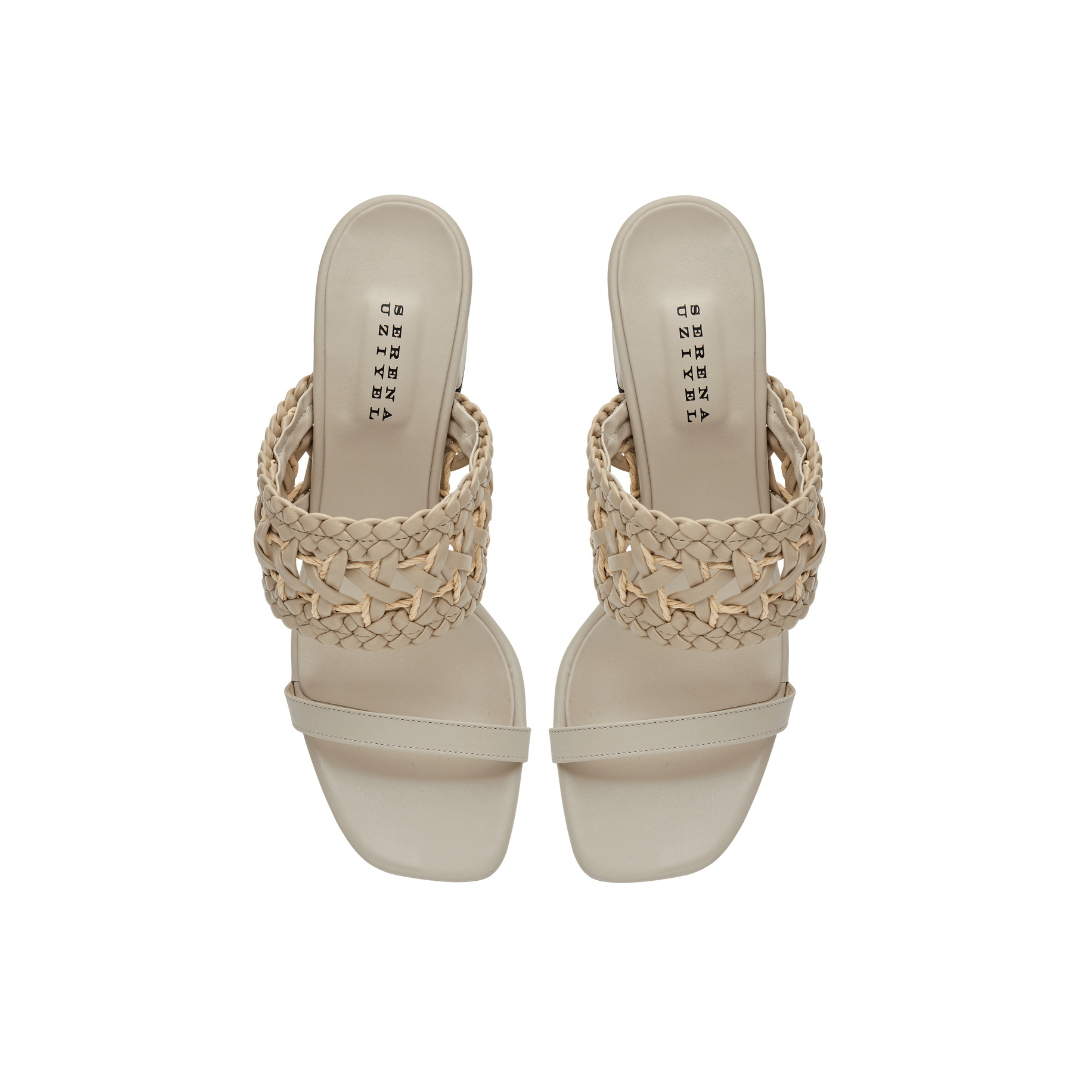 Sophisticated and paired down at once, the Almeria Mid Heel Block Sandals are open toe slip-on heels carefully made in Italy from a beautifully supple nude leather. Featuring a thin toe strap for a contemporary look and a towering fifty millimeters block heel for extra comfort, the focal point of the shoe is the exquisitely handcrafted strap. A signature Serena Uziyel use of intricately contrasted materials, the nude leather braiding of the Almeria sandal’s strap is delicately interwoven with raffia embroidery. Slip them on with everything from a T-shirt and jeans to an evening dress for an undeniably chic look.