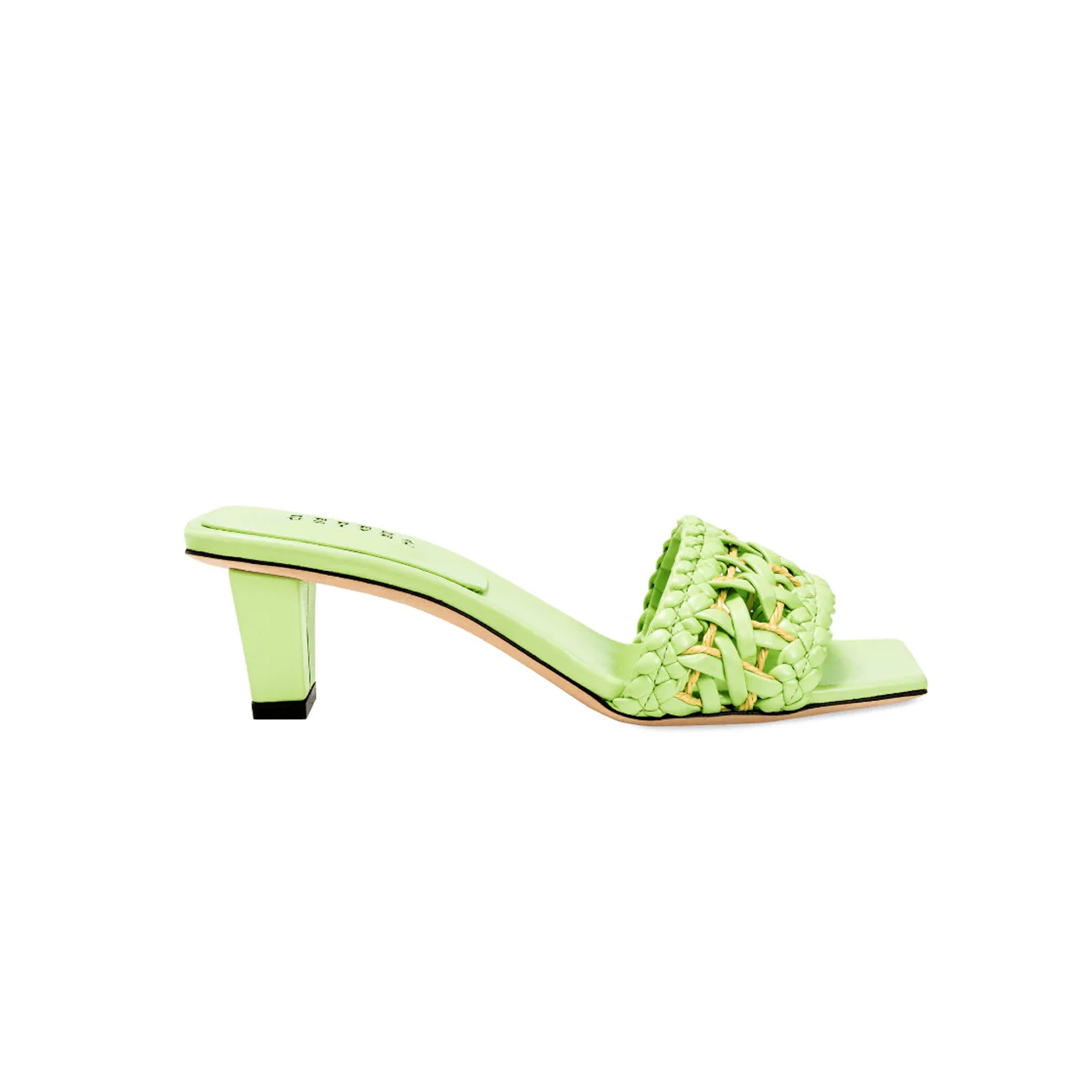 Sophisticated and paired down at once, the Almeria Mid Heel Sandals are open toe slip-on heels carefully made in Italy from a beautifully supple avocado colored leather. Featuring a open toe for a contemporary look and a towering fifty millimeters heel for extra comfort, the focal point of the shoe is the exquisitely handcrafted strap. A signature Serena Uziyel use of intricately contrasted materials, the avocado colored leather braiding of the Almeria sandal’s strap is delicately interwoven with raffia embroidery. Slip them on with everything from a T-shirt and jeans to an evening dress for an undeniably chic look.