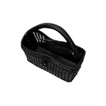 Almeria Tote Bagi is a combination of woven leather and raffia fibers, resulting in pieces to treasure for years to come. This boxy basket style tote is carefully constructed from a soft and pliable, glossy black leather with a sturdy raffia base and tightly braided leather handle. With a natural stone fastening and capacious interior, the Almeria Tote is perfectly size to fit all your daily essentials.