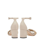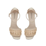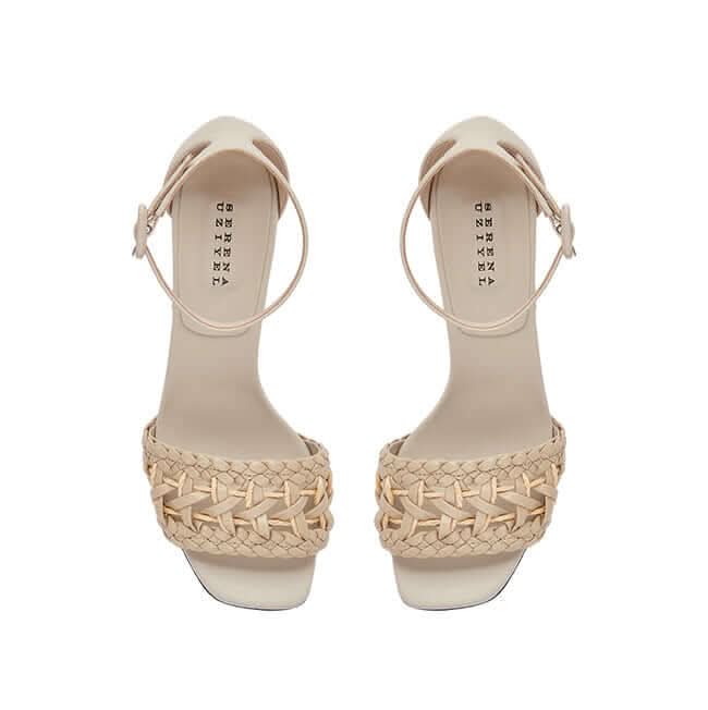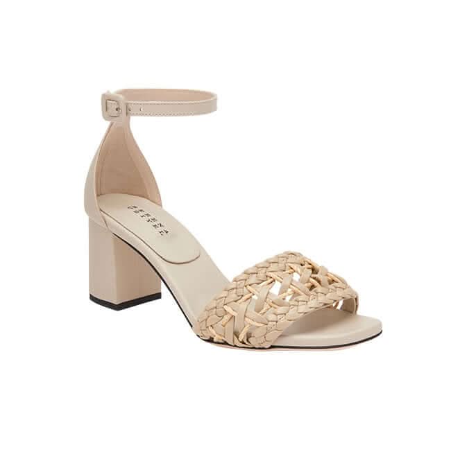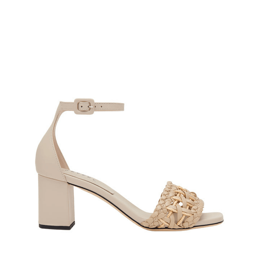 Sophisticated and paired down at once, the Almeria Mid Heel Block Ankle Sandals are open toe ankle strap heels carefully made in Italy from a beautifully supple nude leather. Featuring a open toe for a contemporary look and a towering fifty millimeters block heel for extra comfort, the focal point of the shoe is the exquisitely handcrafted strap. A signature Serena Uziyel use of intricately contrasted materials, the nude leather braiding of the Almeria sandalÕs strap is delicately interwoven with raffia embroidery. Slip them on with everything from a T-shirt and jeans to an evening dress for an undeniably chic look.