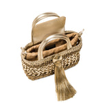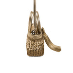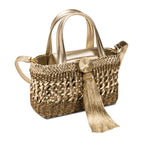 Exuding golden era glamor, the Almeria Sahara Pouch Bag is a representation of the best in luxury, artistry and craftsmanship. Made in Italy from a shimmering metallic leather which has been intricately braided, the clutch bag fastens with an ornate and elaborate woven coin adornment, finished with a lustrous tassel of golden threads. This opulent accessory is the result of hours of craftsmanship, so treasure as you would a piece of jewelry!