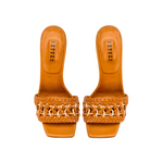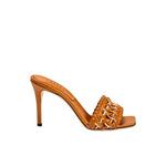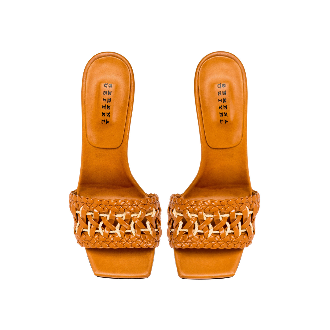 Sophisticated and paired down at once, the Almeria High Heel Sandals are open toe slip-on heels carefully made in Italy from a beautifully supple camello leather. Featuring a square toe for a contemporary look and a towering ninety millimeters heel with a padded insole for extra comfort, the focal point of the shoe is the exquisitely handcrafted strap. A signature Serena Uziyel use of intricately contrasted materials, the camello leather braiding of the Almeria sandal’s strap is delicately interwoven with raffia embroidery. Slip them on with everything from a T-shirt and jeans to an evening dress for an undeniably chic look.
