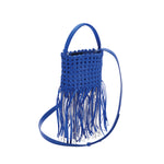 Time-honored basketry meets signature Serena Uziyel techniques in this reimagining of a summer bag. The Aurnia Mini Bag is the result of hours of hand weaving and braiding and presents a sophisticated and small-proportioned take on the coveted summer silhouette. With a long strap and handles in sapphire silk satin, the bag is adorned with an ornate fringe in shimmering glam crystals.
