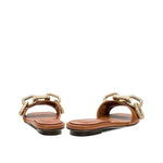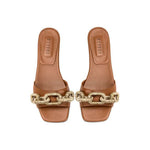 The Catena sandals are the true fusion of comfort and glamour; built with pure Italian camello soft leather, the expertly crafted sandal sits on a delicate ten millimeters uplift together with an opulent gold and silver metallic chain to illuminate every step you take.