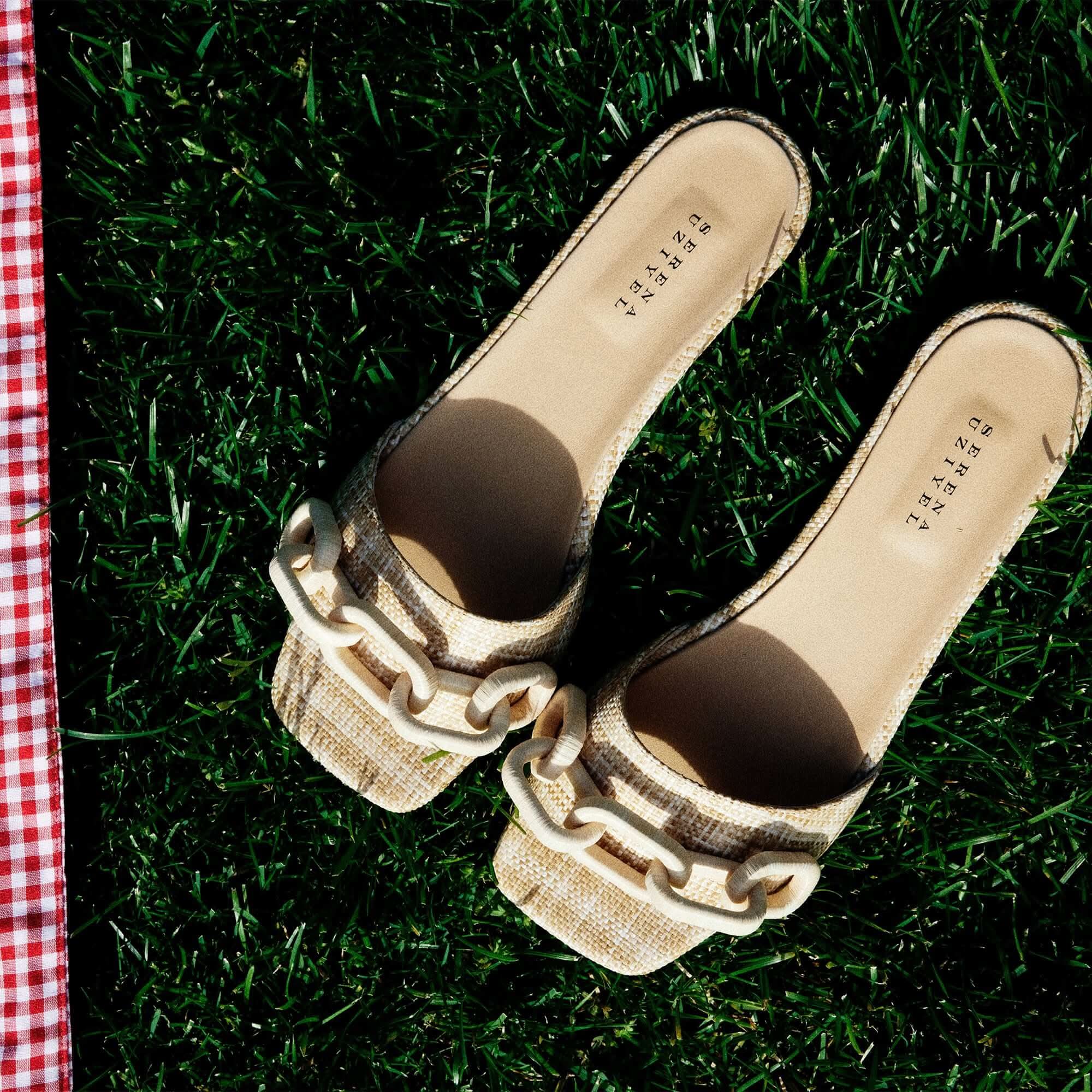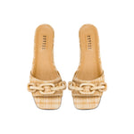 The Catena sandals are the true fusion of comfort and glamour; built with pure Italian legno woven natural raffia, the expertly crafted sandal sits on a delicate ten millimeters uplift together with an opulent natural raffia chain to naturalize every step you take.