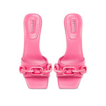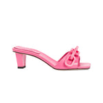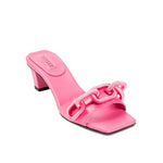 Expertly crafted from fine Italian leather, the Catena Mid-Heel Sandal is a timeless silhouette that will compliment your wardrobe for years to come. Pink cotton threads are woven to articulate an exquisite chain link design embroidered across the front toe strap. The Catena Sandal is an undeniably chic accessory that adds a touch of delicate refinement to any ensemble.