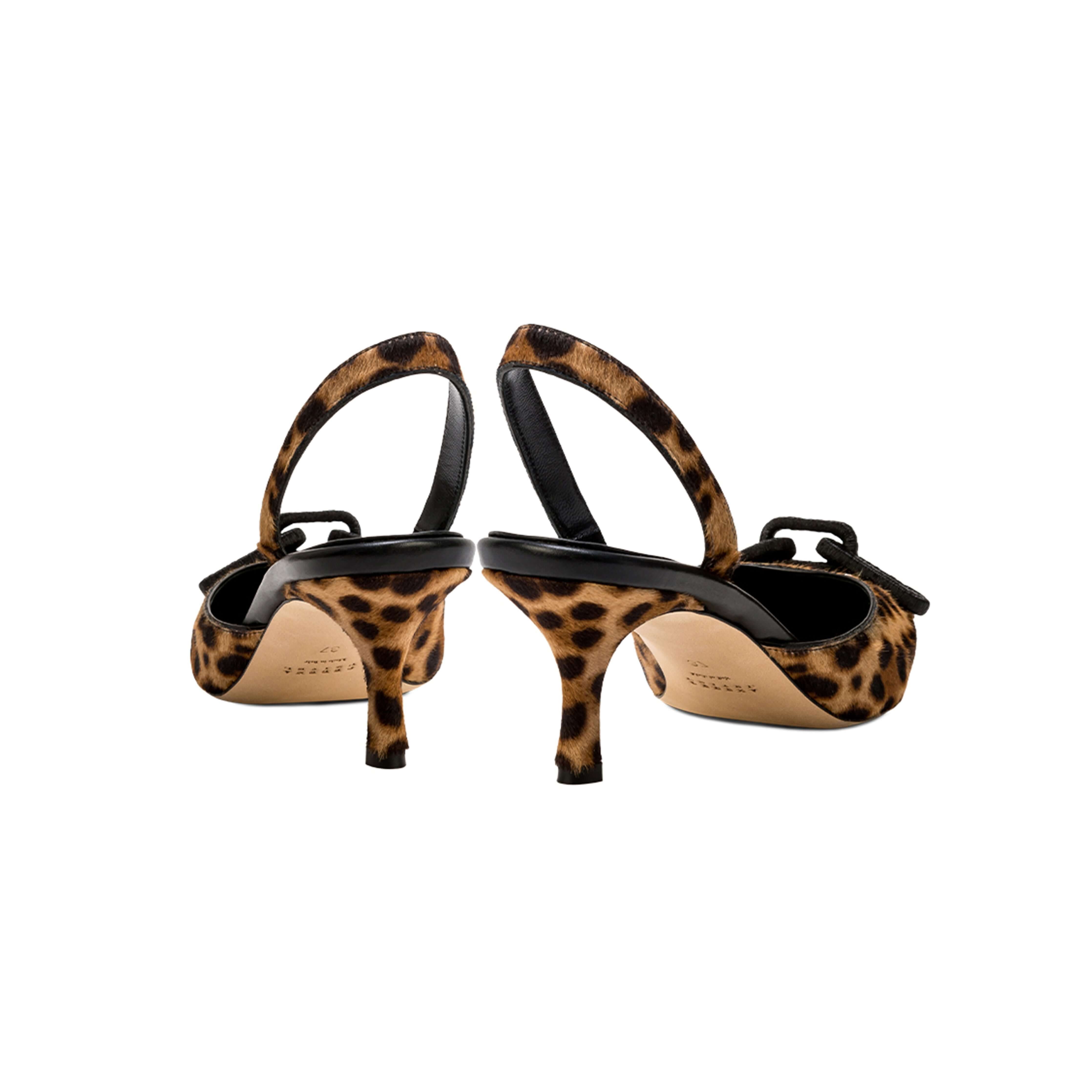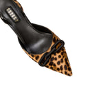 The Catena Leopard Slingback Pump is an ultra-chic and timeless piece that will be your go-to when looking to add a touch of sophistication to any ensemble. A slender stiletto heel with a closed toe, the shoe comes in a seductive leopard print calf-hair with a black leather slingback strap that lightly embraces the ankle. The elegantly pointed toe is adorned with the signature Serena Uziyel chain link, composed from delicately hand-woven threads. Artful, refined and striking, the Catena Slingback Pumps are a piece to treasure for years to come.