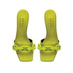 The Catena Silk Satin Acid Green Sandal is the ultimate show-stopper! The vibrant acid green coupled with matte chain embellishment is the perfect choice to step into the spotlight. Indulge in the luxurious charm of the sandals which will transform every stride into a testament of your impeccable style.