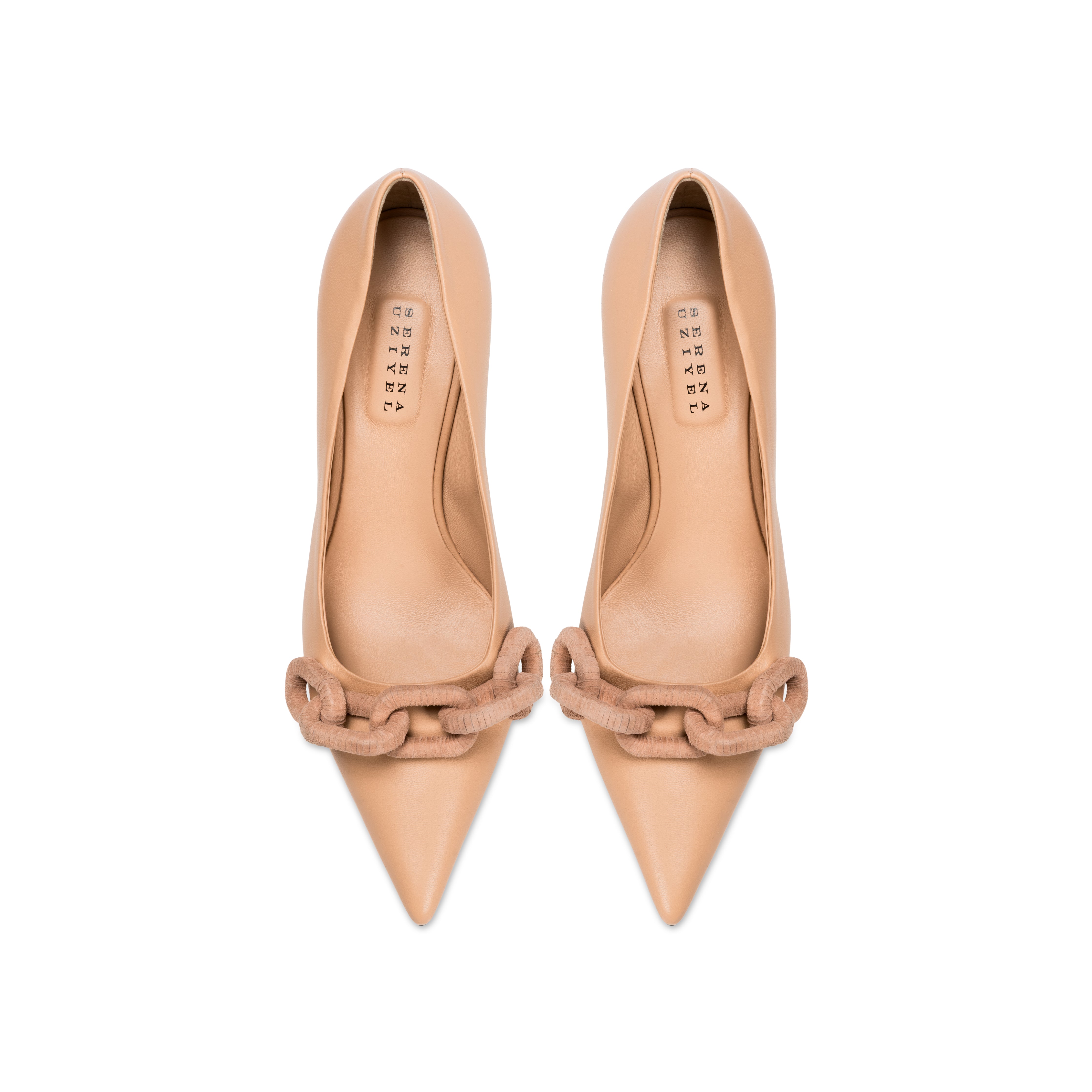Handcrafted in Italy from pat leather with luxuriously lined in patent leather chains, the Catena Pumps feature a sleek pointed toe set on a slim 70mm stiletto heel. A result of Impeccable craftsmanship and timeless design, the pumps are detailed with a brand new iteration of Serena Uziyel’s signature Catena chain links, this time delicately wrapped in threads of sumptuous suede. Classic and easy to style, the pumps are ideal to pair with anything from tailoring to midi dresses.