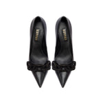 Handcrafted in Italy from smooth black leather, the Catena Pumps feature a sleek pointed toe set on a slim 70mm stiletto heel. A result of Impeccable craftsmanship and timeless design, the pumps are detailed with a brand new iteration of Serena Uziyel’s signature Catena chain links, this time delicately wrapped in threads of sumptuous suede. Classic and easy to style, the pumps are ideal to pair with anything from tailoring to midi dresses.