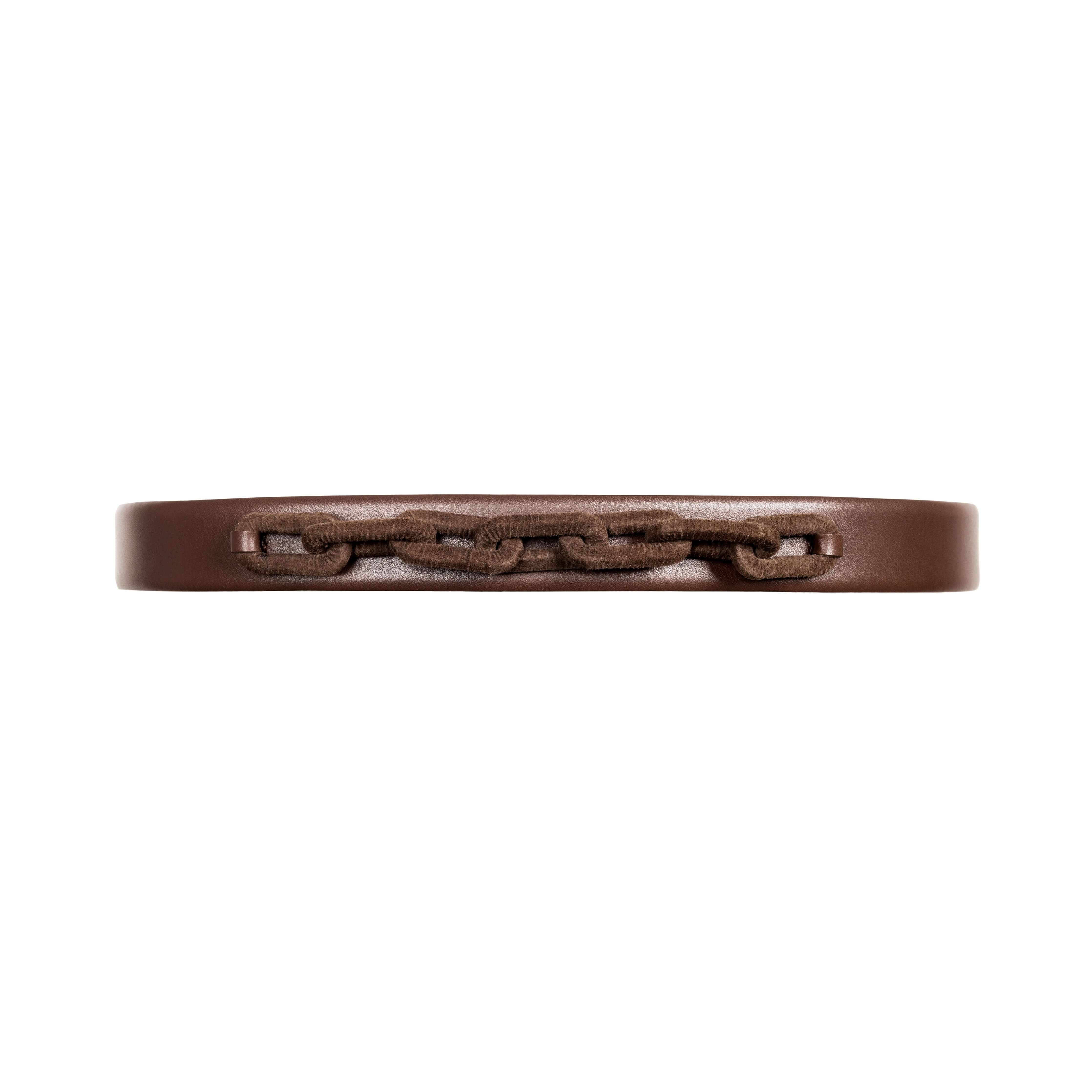 The Catena Belt combines beautiful craftsmanship with versatile design.This adjustable belt in brown suede and leather can be worn wide for a bold look or cinched as a sleek waist belt. A meticulously arranged strip of signature Catena chain links stands as a symbol of unity and enduring connection, making it the perfect piece to elevate any ensemble. Subtle enough for daily wear, yet striking enough to complete the boldest of looks, the Catena Belt is the ultimate statement of contemporary style with a nod to timeless tradition.