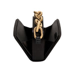 Expertly handcrafted in a luxurious pure black silk satin, the Catena Two-Sided Bag brings glamour and sophistication to your wardrobe. The fine metallic threads articulate an embroidered chain-link handle at the top of the bag. Catena Two-Sided Bag is unique due to its two-sided openings as each is independent from the other with separate compartments for added convenience. The elegance and ease of the Catena will enhance attire suitable for both day & night.