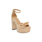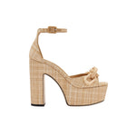 Channeling 70’s soul and spirit, the Catena Platform Ankle Sandals are set on a chunky platform sole with a towering block heel. Carefully constructed in Italy from soft natural raffia, the sandals feature an open toe and dainty ankle-strap atop the sky-scraping heels, promising comfort and elegance at once. Signature Serena Uziyel wrapped raffia chain embellishments lend a sculptural element to the toe strap.