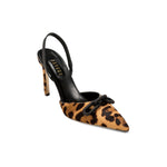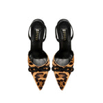 The Catena Leopard Slingback Pump is an ultra-chic and timeless piece that will be your go-to when looking to add a touch of sophistication to any ensemble. A slender stiletto heel with a closed toe, the shoe comes in a seductive leopard print calf-hair with a black leather slingback strap that lightly embraces the ankle. The elegantly pointed toe is adorned with the signature Serena Uziyel chain link, composed from delicately hand-woven threads. Artful, refined and striking, the Catena Slingback Pumps are a piece to treasure for years to come.