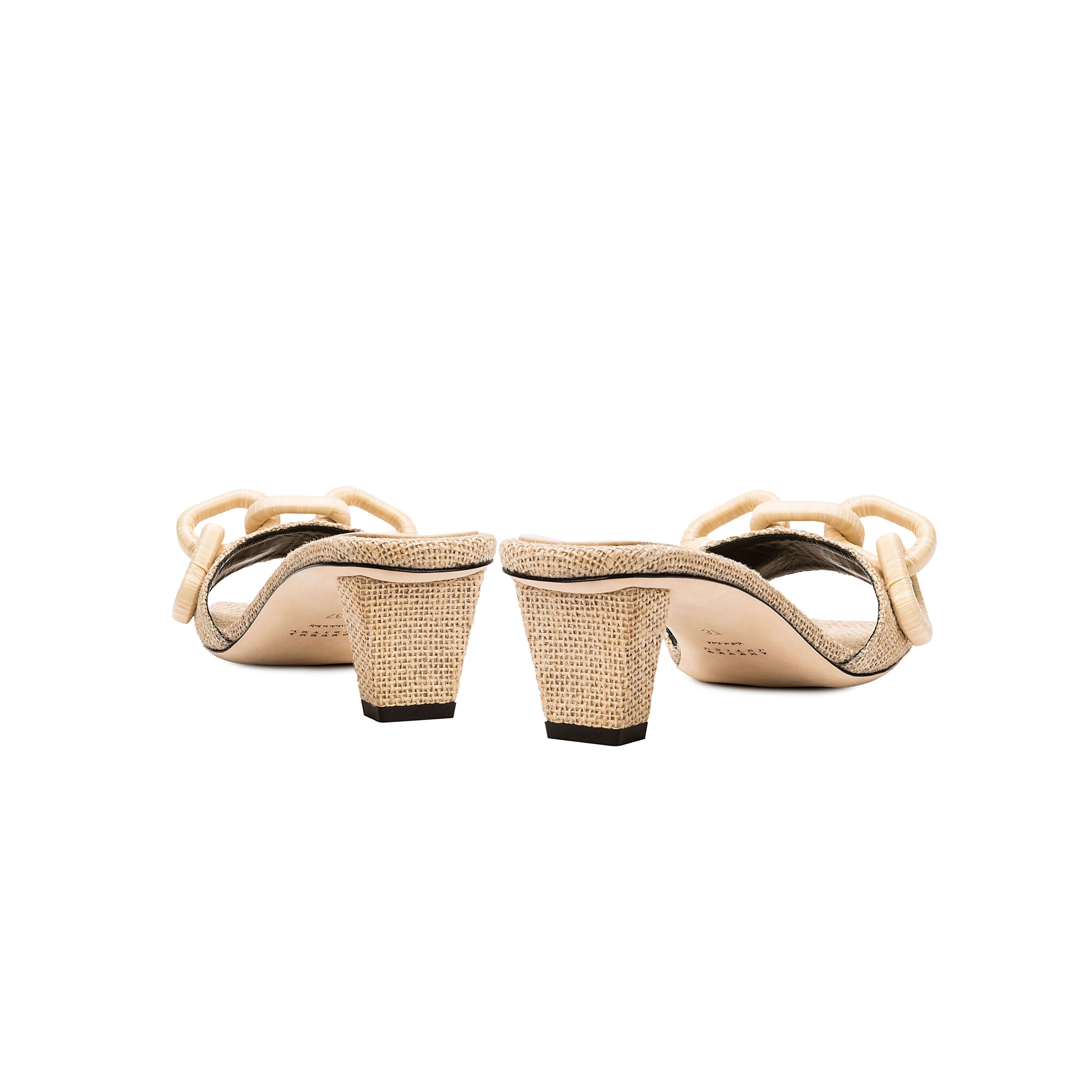 The captivating Catena sandal in natural linen, adorned with natural raffia chain threads. With a fifty millimeters uplift, the sandals offer both comfort and elegance. Step into the spotlight with the beguiling Catena sandal and bask in the adoration of onlookers as you exude confidence and grace.