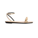 Catena Notte Sandals are fashioned with a vibrant, delicate cable chain pattern placed along the top of the toes, finely crafted with high-quality natural canvas. Slender ankle straps and a glossy gold buckle allow the elegant Cantena Notte flat sandals to adjust to your ankle size. Enjoy the effortless luxury our versatile flats bring with their rich color inspired by the limitless beauty of the water and the tranquility of beach life.