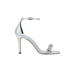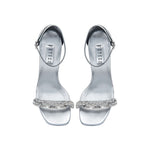 The Catena Notte High Sandal’s provide a subtle and chic look. The sleek metallic leather goes harmoniously with the antique silver thread and crystal wrapped, creating an elegant refinement.