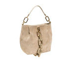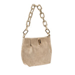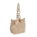 Catena Shoulder Pouch Bag is a petite and elegant shoulder pouch, inspired by soft, sculptural silhouettes that embody refined sophistication. Crafted in Italy by skilled artisans from supple leather or soft suede, it features two detachable straps—one short, one longer—for versatile styling, as well as a Catena chain link strap that drapes like jewelry when not in use.