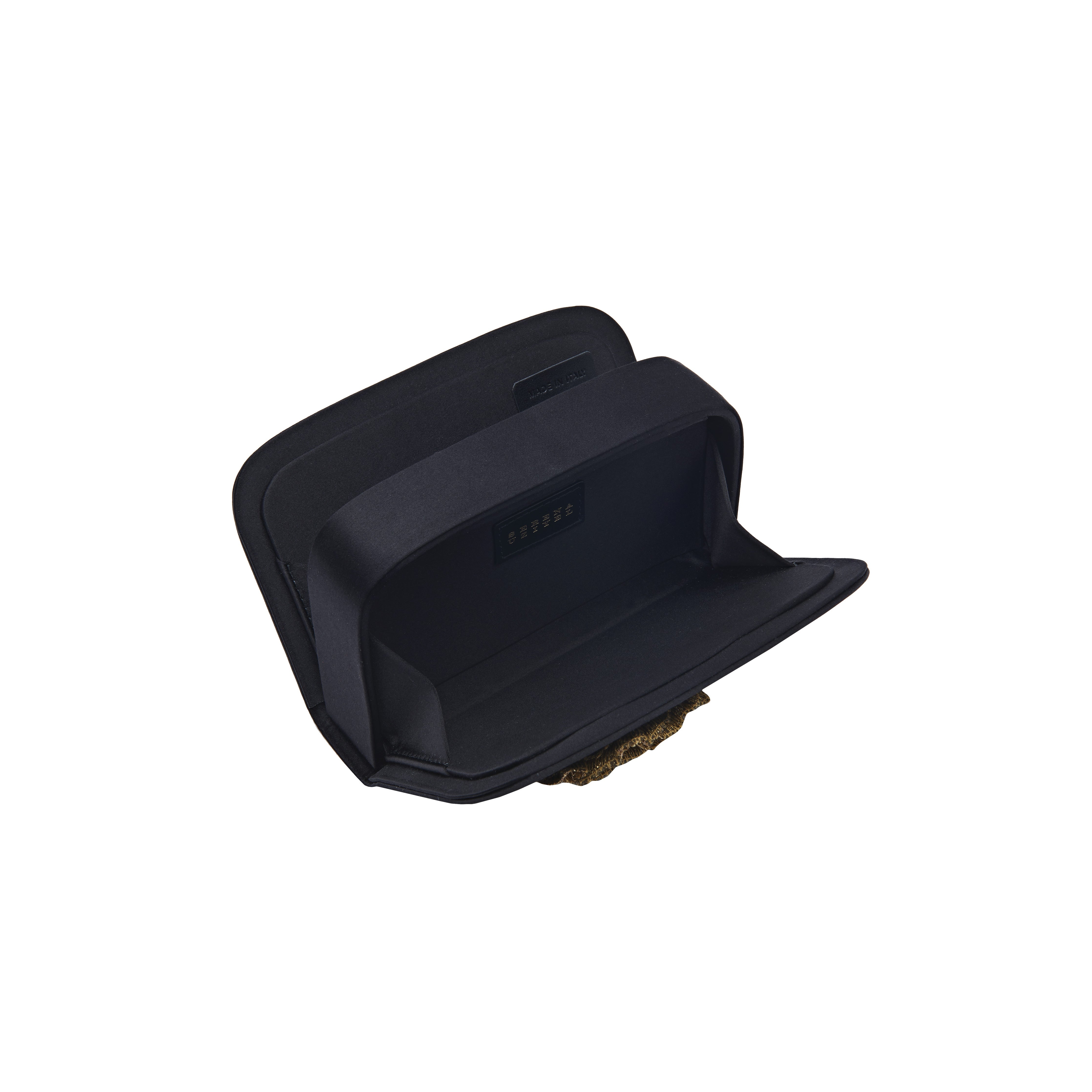 Meet the enchanting Lavinia Two-Sided Clutch, where elegance meets allure. A true showstopper, this clutch features a signature Florette embellishment that takes center stage, atop the sleek black satin built. The exquisite metallic embroidery adds a touch of opulence and elevates the overall femininity, casting a spell of elegance.