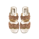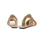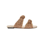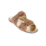 The Rhea Two-Strap Flat Sandal blends artisanal craftsmanship with effortless elegance. Handmade using centuries-old techniques, this design features two intricately knotted crochet leather straps, creating a sculptural, three-dimensional effect enhanced by the rich interplay of metallic threads. Crafted from supple leather in Sahara Mix, the sandal is finished with a gently cushioned leather insole for all-day comfort. A versatile essential, perfect for sightseeing on vacation or elevating warm-weather ensembles with ease.