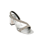 Ronda Silver Mid-Heel Asymmetric Sandal