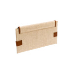 Our Thory natural envelope clutch is sleek and refined, designed to fit into your modern lifestyle with ease and sophistication. The natural canvas and gorgeous camello leather trim exude a mood of safari getaway with a stunning blend of neutral shades drawing inspiration from the desert. The twisted raffia closure and mirrored inside add thoughtful details.